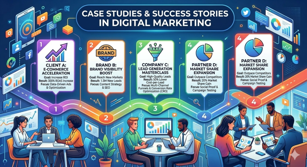 Case studies and success stories are powerful tools in digital marketing because they demonstrate how a product or service has helped real customers solve problems. Instead of simply promoting a brand, case studies provide evidence of results, making them highly effective for building trust and credibility among potential customer